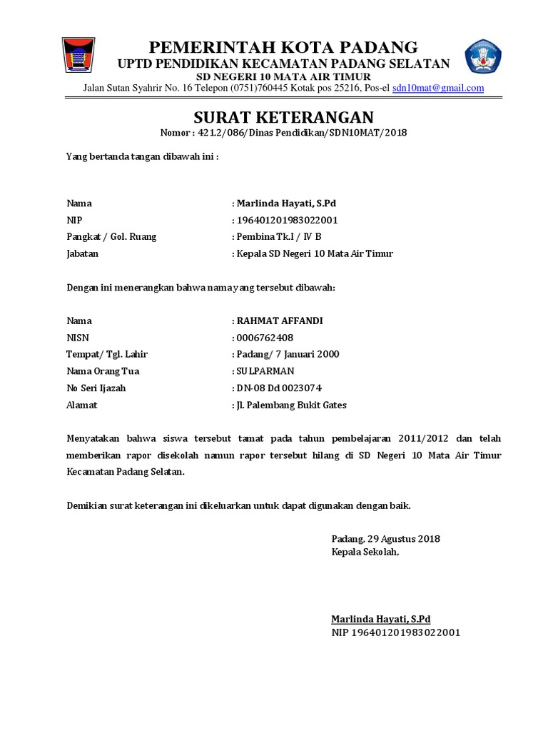 Maybe you would like to learn more about one of these? Contoh surat pernyataan siswa kehilangan ijazah. Check spelling or type a new query. We did not find results for: